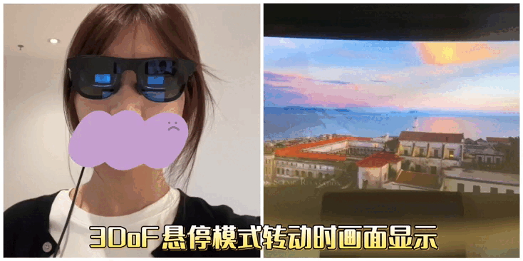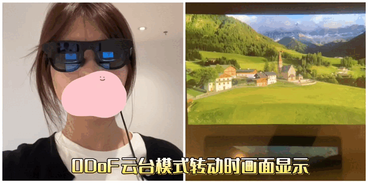 我们也连接一下颈环,看一下这款VITURE Pro的3DoF悬停、0DoF云台两种模式的显示效果: