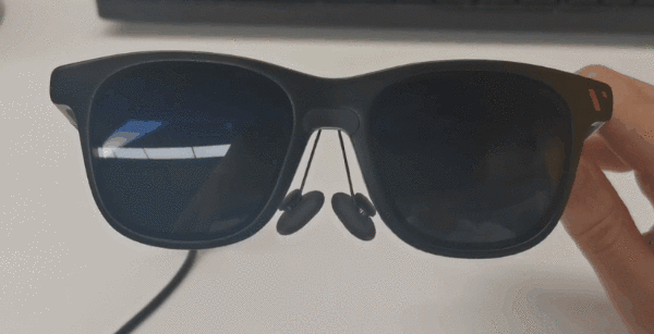 但外部终端方案也存在两个问题,一是画面矫正不够快,而且画面出现轻微抖动;二是眼镜需始终连接外部设备,带着累赘使用确实也不方便。