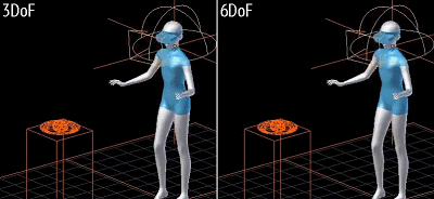 - 6DoF:“未来的技术终点”,无论走路还是转动头部,画面始终保持静止,提供完全仿真的体验,与肉眼看到的自由度一致。这项技术需要更多传感器和复杂的算法支持,需要付出的技术成本更高,所以产品价格也不便宜。