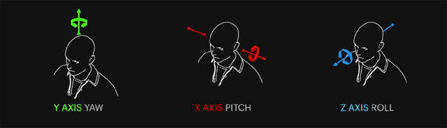 我们在现实世界中的运动可以抽象为围绕六个轴的移动:三个方向轴(上下、前后、左右移动)和三个旋转轴(头部的旋转)。