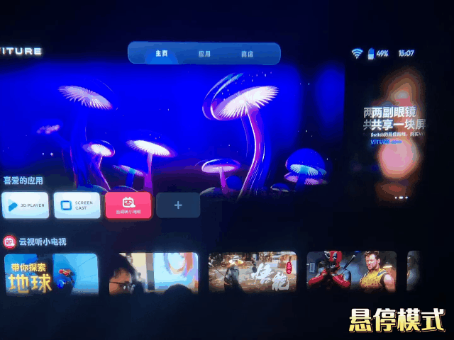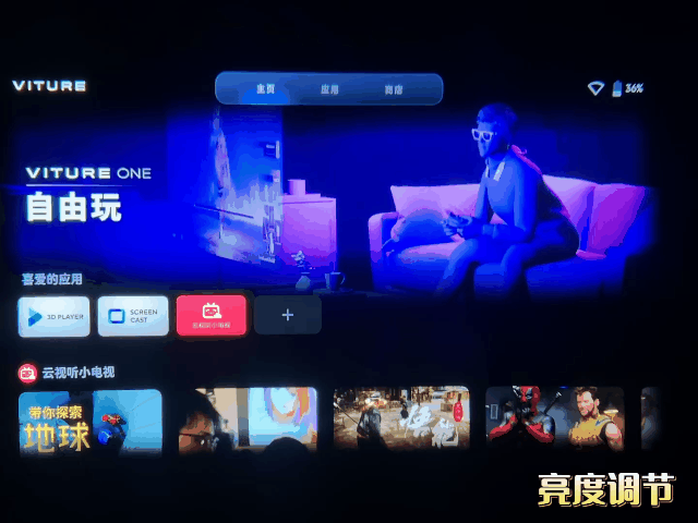 VITURE Pro软件做得还可以,颈环设计的理念很有特色,内置很多串流软件,省去了我们自己下载安装的麻烦,观影支持TV版应用,不过需要额外开会员。
