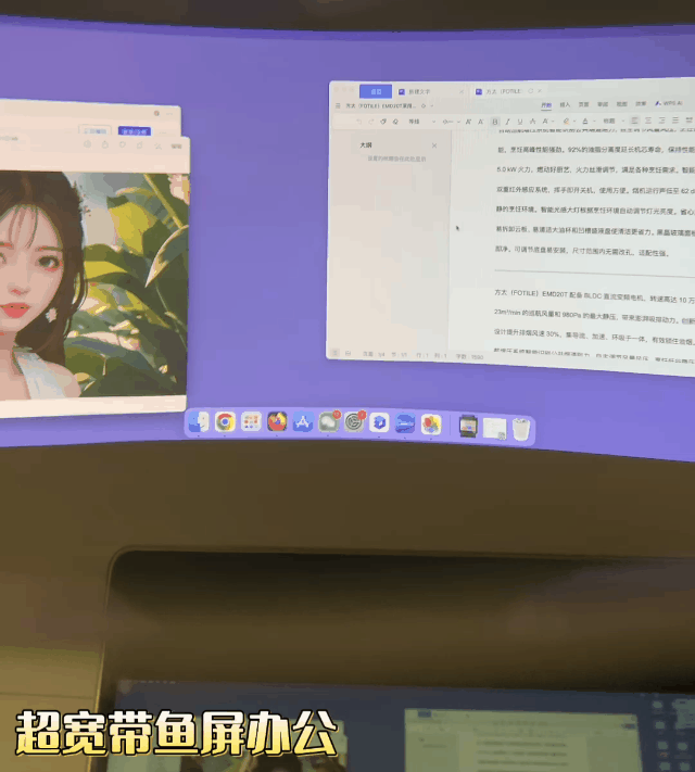 用来办公也超级方便,XREAL One可以直接连接电脑,办公的时候我一般都会设置32:9超宽带鱼屏,通过眼镜的按键调节就可以开启,实现超大屏显示,提升工作效率。快速获得更加沉浸的视觉体验,同时画面还可以进行多任务处理,让办公体验更加流畅。